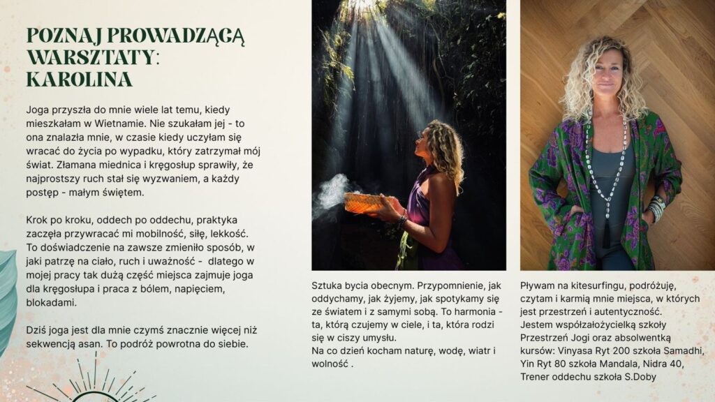 Praktyka Jogi, Oddechy, medytacje i masaż misami tybetańskimi – Karolina Grobelna
