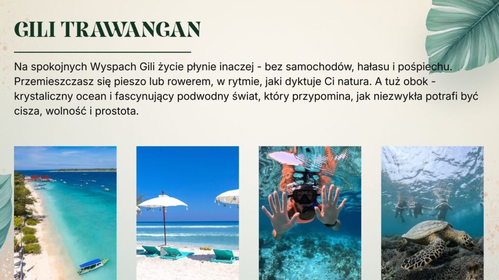 Jeśli wybrałaś wyjazd rozszerzony, to ten dzień rozpoczyna przygodę na Wyspę Gili.